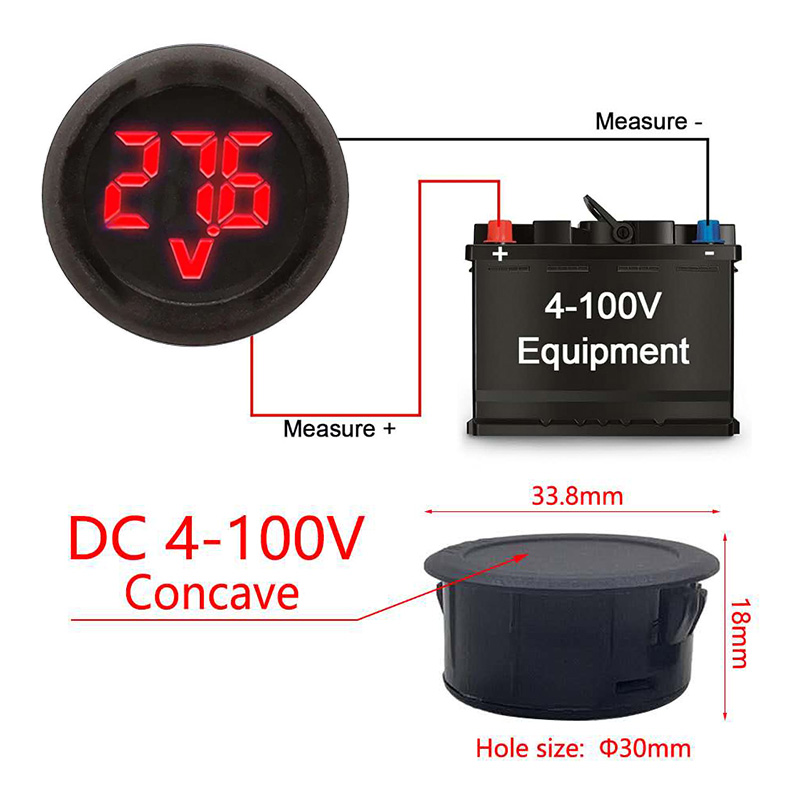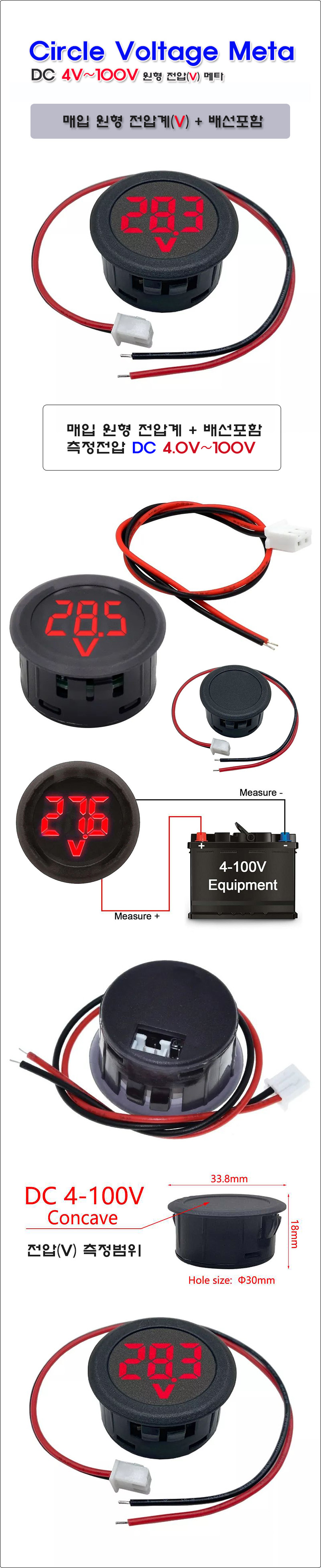 [P] KDsafe DC 4V~100V 매입 원형 디지털 전압(V) 메타 (원형 전압계+배선포함)