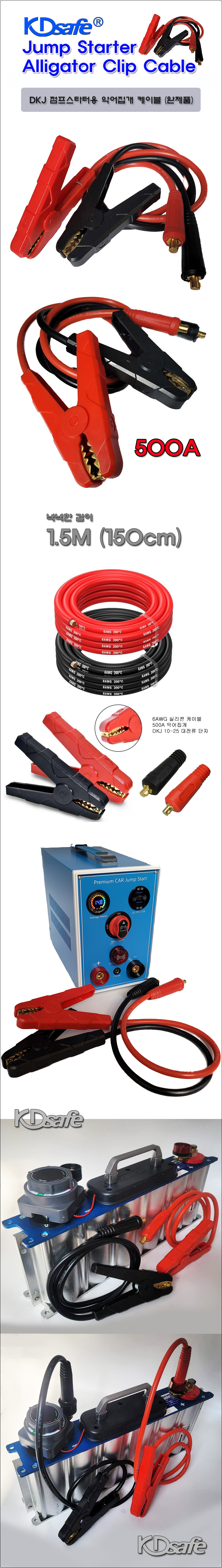 [점프 스타트용] 500A악어집게 + 6AWG실리콘전선 1.5M (DKJ단자+소켓 완제품 1세트)