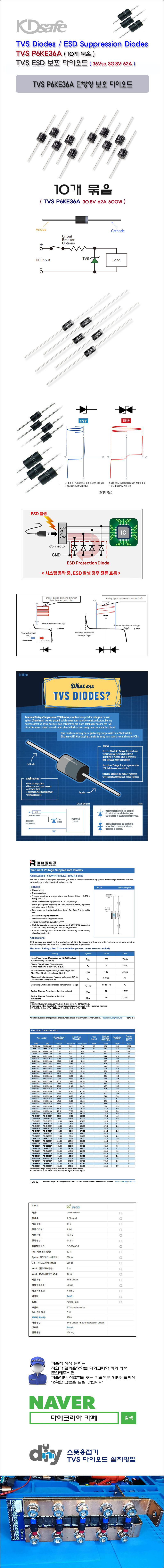 TVS 단방향 다이오드/ 스폿기 MOS-FET/ESD 보호 (P6KE36A 10개묶음)