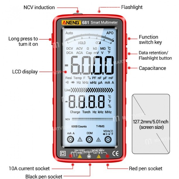 (NEW) ANENG 681 초정밀 초대형 LCD AUTO 디지털 멀티 테스트기 (6000카운터)