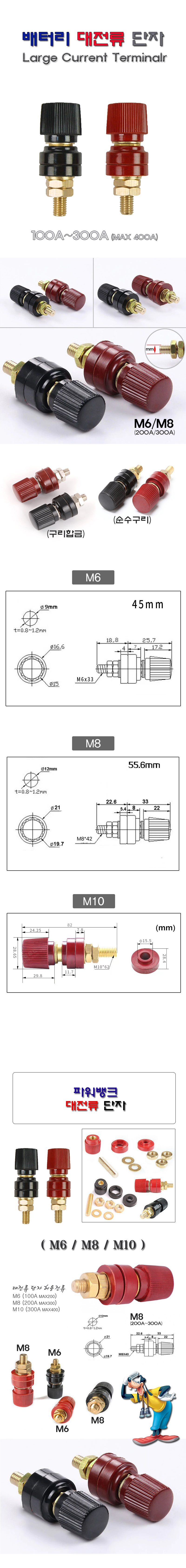 (E) 파워뱅크 원형 대전류 단자 M6 M8 M10 100A 200A 300A 400A (적색/흑색 세트)