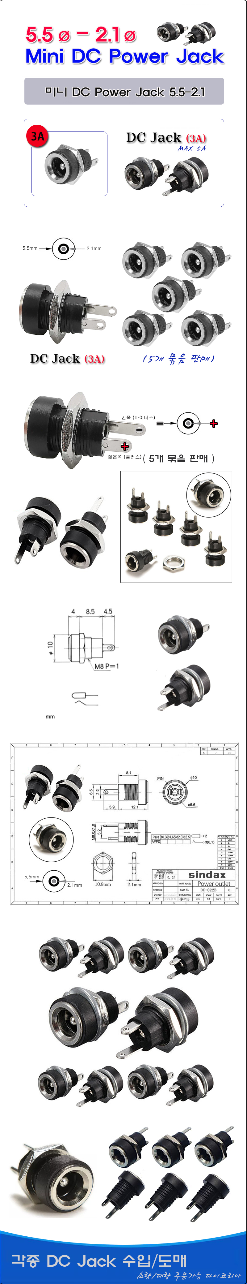 (D-45) DIY DC전원잭 5.5-2.1Ø 3A / Max5A 미니 (5개 묶음)