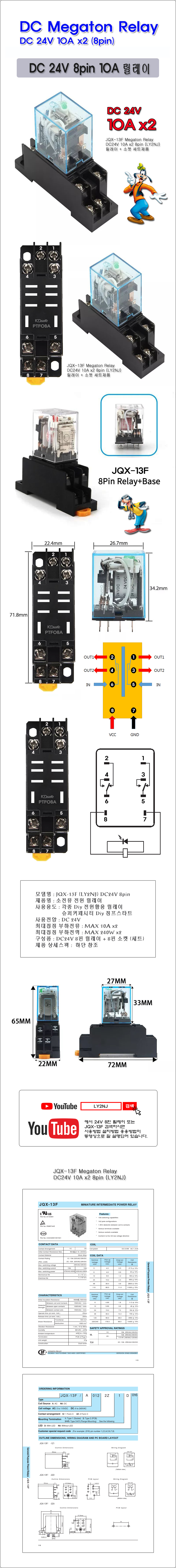 (C-13) 소전류 DIY DC24V 10A 8핀 릴레이+소켓세트 (JQX-13F/LY2NJ)