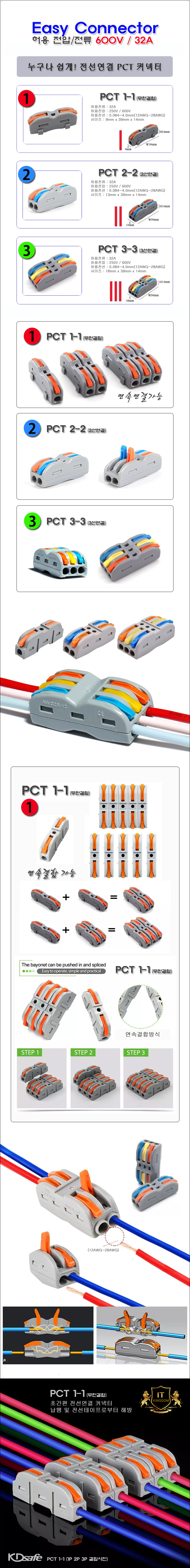 (E) 초간편 쉬운 전선/케이블 연결 PCT 커넥터 (원터치 레버 전선결합)