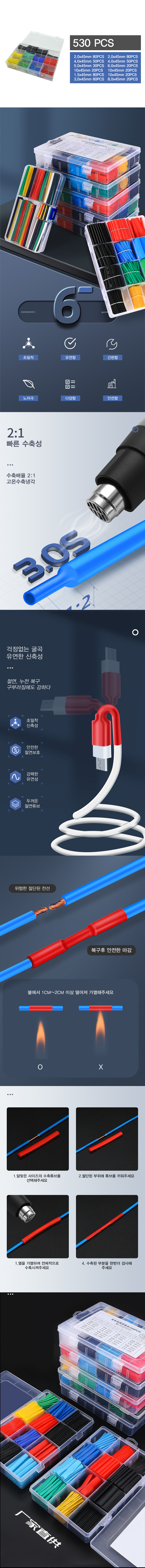 (L-12) DIY 컬러 열수축 튜브 530PCS 전선 (절연튜브)