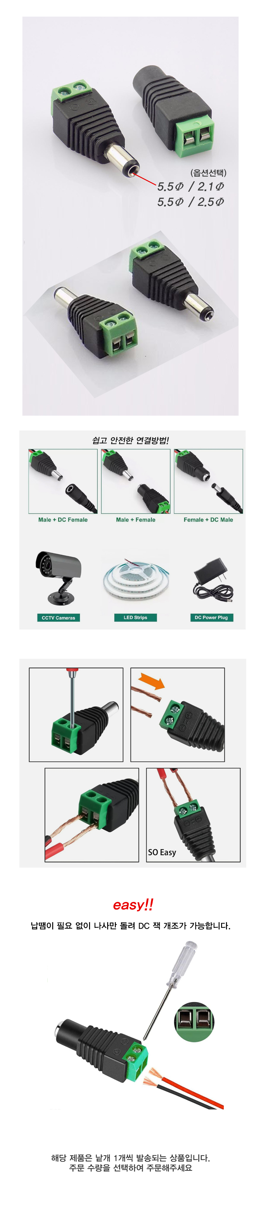 (E-39) 나사결속 DIY DC잭 플러그 (숫) 5.5-2.1Ø 2.5Ø (5개 묶음)
